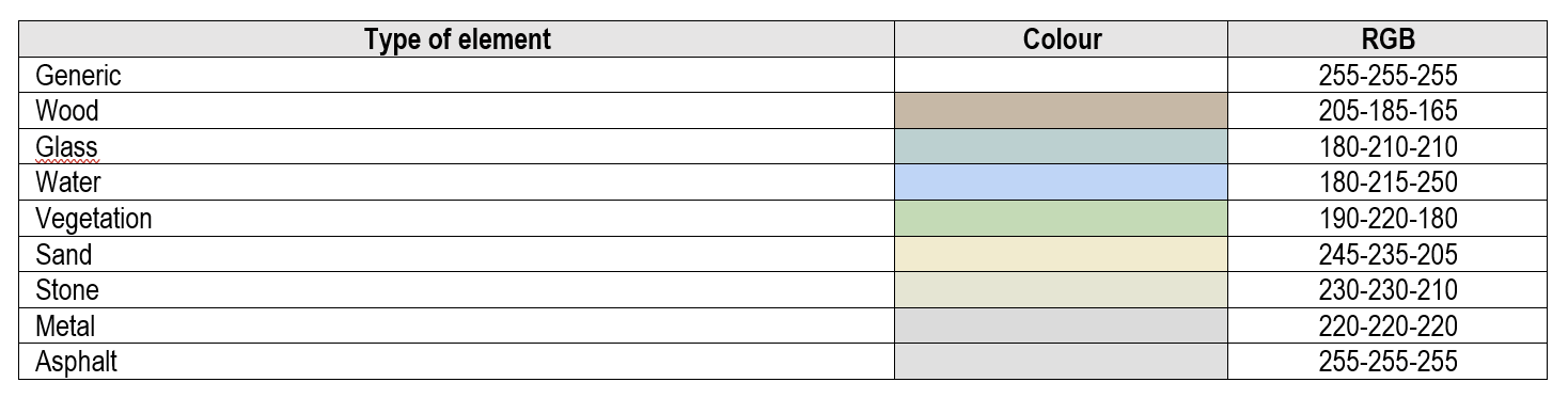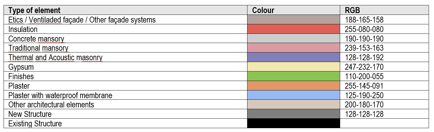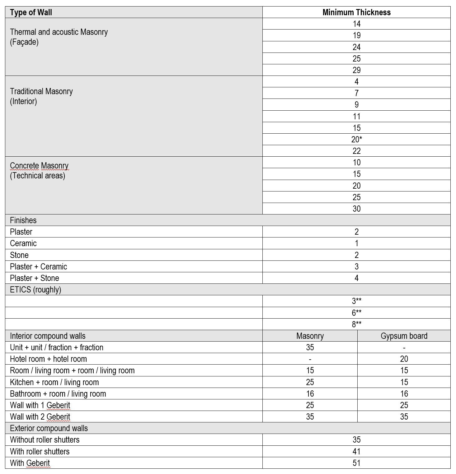 When starting to model, the elements dimensions, even if not final, should be realistic in order to avoid future problems with space to fit the elements and / or legislation requirements. Because of that, the walls used to start one project should respect the following table. These default walls are already created in NLAs template.