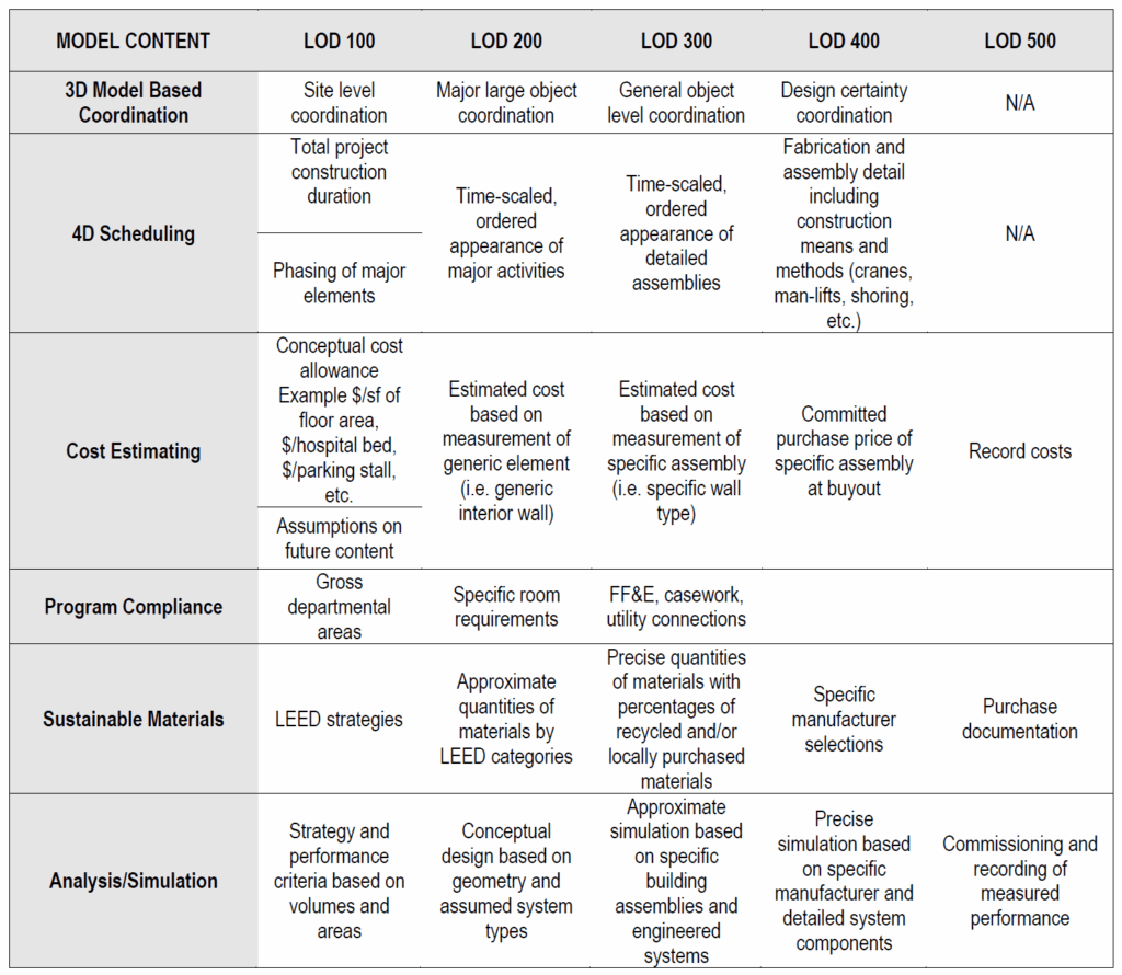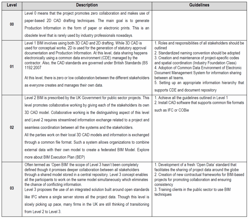 This table was created according to the document “BIM Maturity Levels Explained- Level 0 | 1 | 2 | 3” – United BIM.